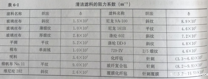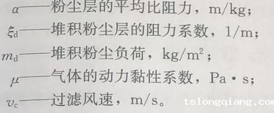 滤袋上粉尘的阻力△pd可按公式(6-7)计算,即