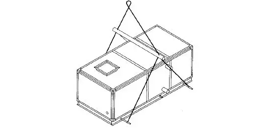 (2)为了防止在起吊安装过程中损伤机组箱体,在用绳索进行吊装时,应将绳索放在机组底座上。机组吊装示