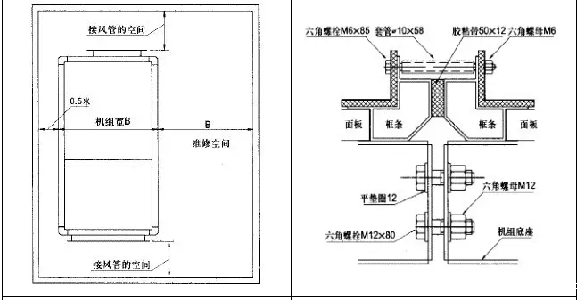 (3)机组的基础四周应留有足够的维修空间(见图3-维修空间示意图),以便对机组进行日常检视和定期维修保养。