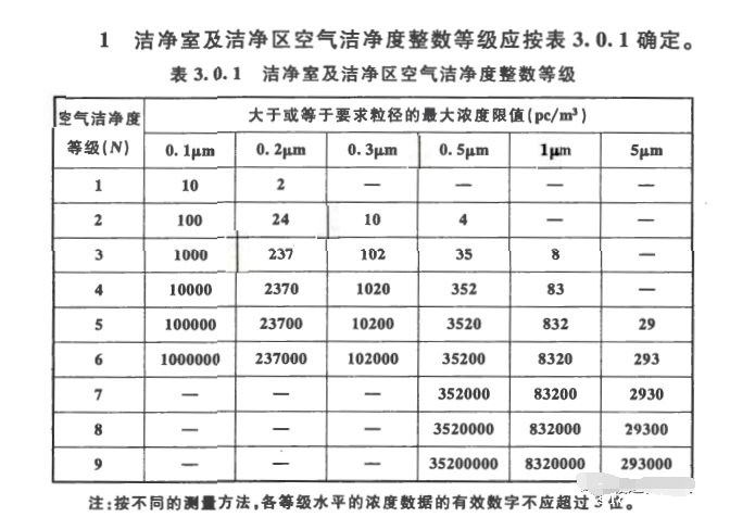在《洁净厂房设计规范》(GB50073-2013)第三章 空气洁净度等级 一文中有关于空气中悬浮粒子空气洁净度等级应符合的明确规定(注:此条为强制性条款)。