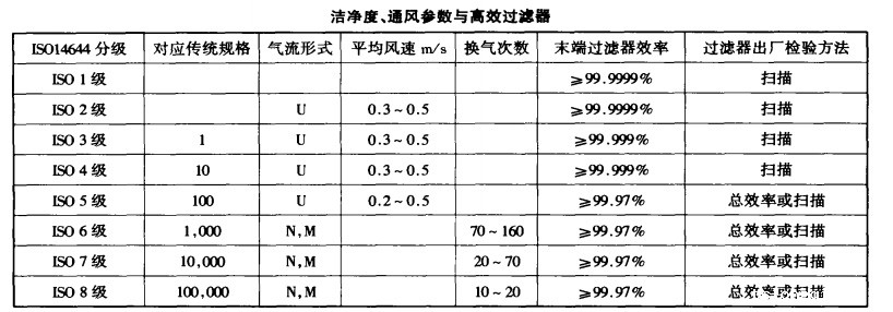 雷竞技软件大全是通用产品,不管什么等级的洁净室,所用的高效雷竞技软件大全是一样的。一旦雷竞技软件大全的品质有了保证,通风参数(换气次数或平均风速)就成了决定洁净工程质量的关键因素。表4—1是洁净室设计时应考虑的一些因素。表中的“气流形式”、“平均风速”、“换气次数”指标源于ISO标准,“末端雷竞技软件大全效率”和“雷竞技软件大全出厂检验方法”两栏是笔者自己加上的。