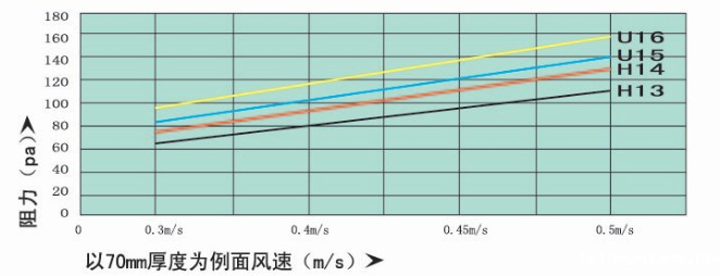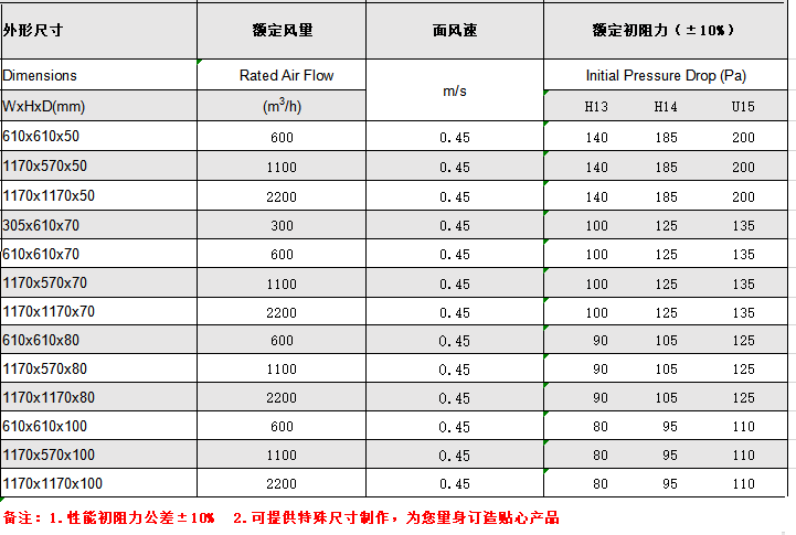 效率:DOP 99.9997%@0.12um、99.99997%@0.12um、99%@0.3um、99.99%@0.3um、99.999%@0.3um