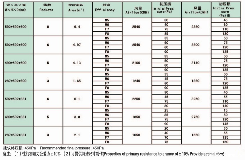 标准:EN779 M5,M6,F7,F8,F9